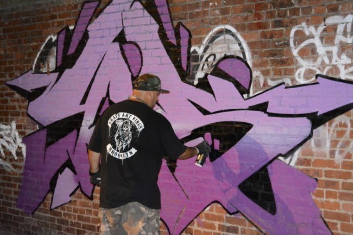 At 6:30 p.m., YesOne set up his spray paint by a brick wall at 107 Suffolk St., put on some mellow hip hop, held his sketch in one hand, eyed the wall, and then began his piece just minutes later. Guests who registered beforehand then began to enter the courtyard one by one, filling the space with banter and their appreciation for street art.