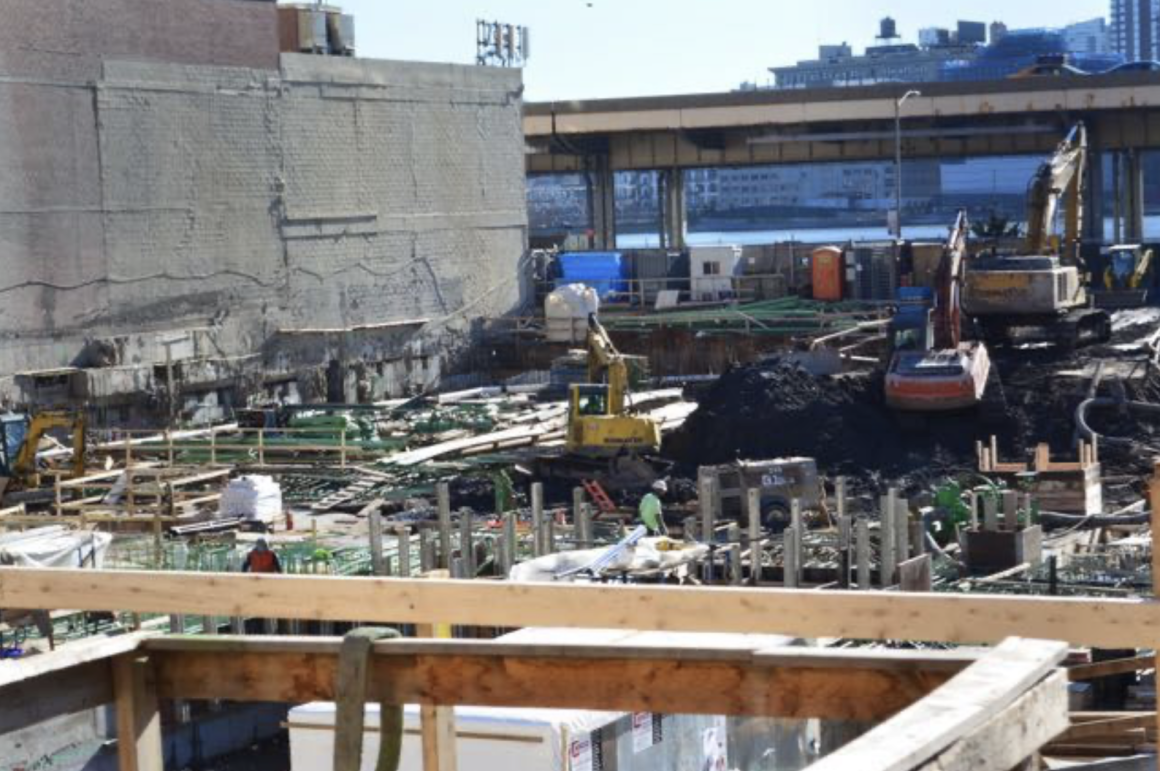 This morning, Victor Papa of the Two Bridges Neighborhood Council said there’s interest in meeting with Extell about the plaza. “We would welcome such a meeting,” he said, “not so much to emphasize a divide, as to improve the plaza area.” Papa also said he hopes to meet with Extell executives soon about plans for the new supermarket and about damaged caused by construction.