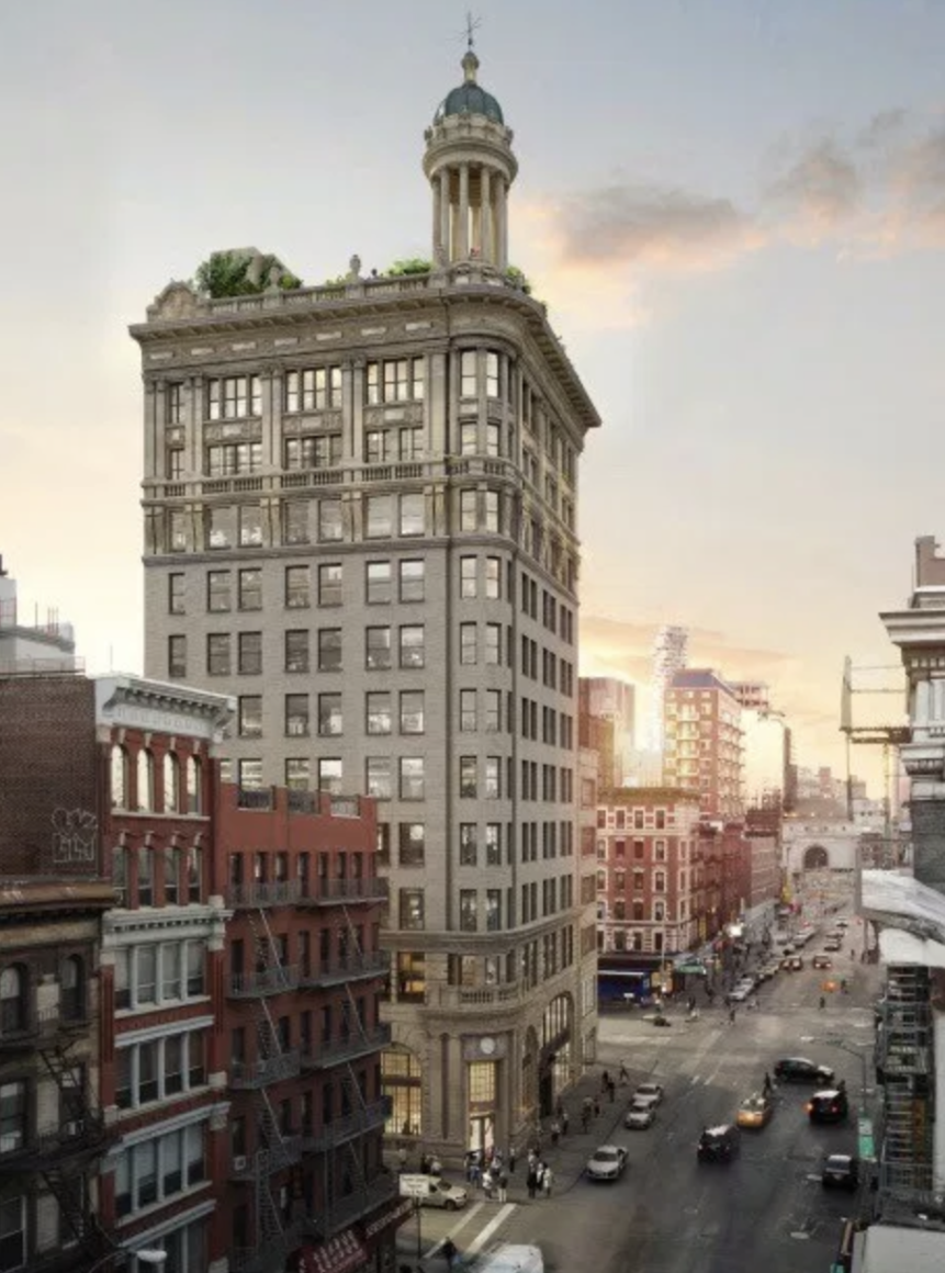 The property at 54 Canal St./9 Orchard St. was purchased in 2011 by DLJ for $33 million. The city landmark has been undergoing a painstaking restoration, including the recreation of a 50-foot-high domed spire on the top of the building. The owners were set to go before Community Board 3 last year in their quest for multiple liquor licenses at 9 Orchard, but those appearances were cancelled.
