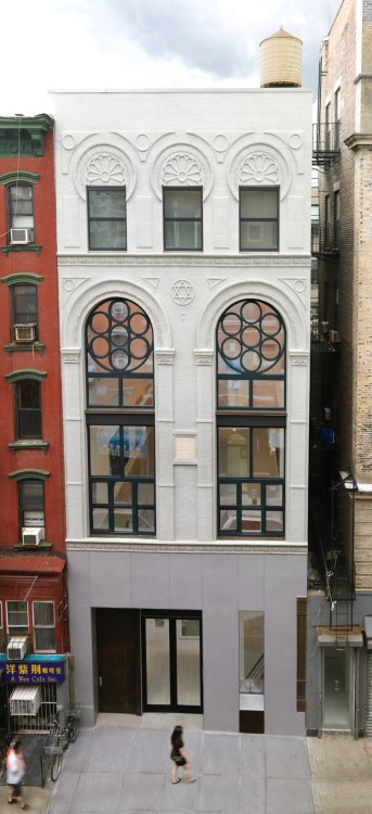 The painstaking project was handled by Ryall Sheridan Architects. The building, located just below Grand Street, was largely untouched since 2004, when Resnick took his own life at the age of 87. The property, which is not a city landmark, dates to about 1890 and became a synagogue in the early part of the 20th Century. Resnick bought it in 1976. The tenement has been modernized with an elevator, museum-standard climate control and even an 18-foot-long hatch in the floor to accommodate installation of Resnick’s largest paintings. Two beautiful 20+ foot high rose windows in the front of the building have been restored.