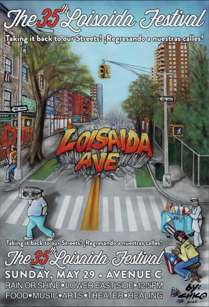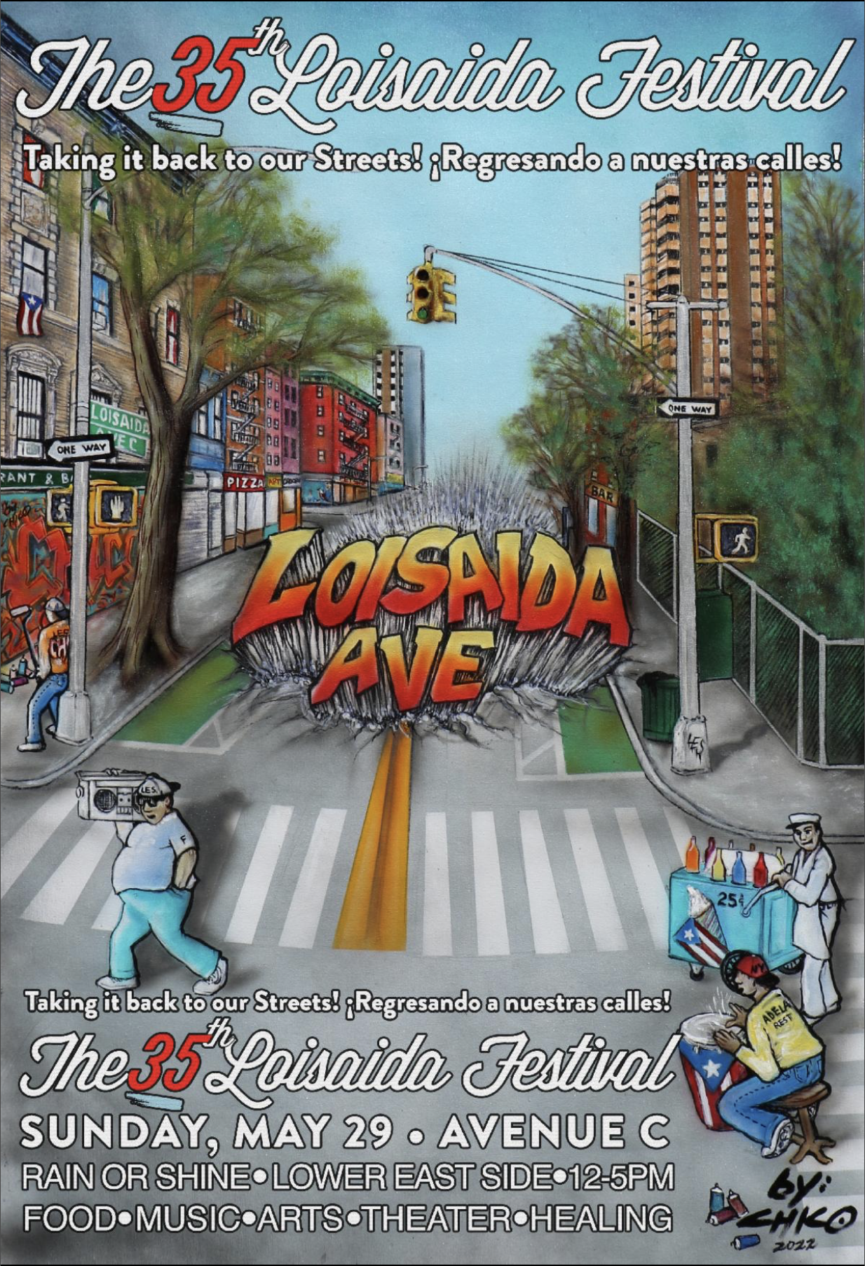 The 35th Annual Loisaida Festival returns to Avenue C, between 5th and 12th Streets, on Sunday, May 29 from 11:30am – 5:00pm. The beloved festival has been on hold (online only) the last two years due to the pandemic. The return to the streets promises a celebration of the resilience of the Latinx and LES community, in particular, with live music, theatre, food and fun for the whole family – not to mention, COVID-19 shots for the community.