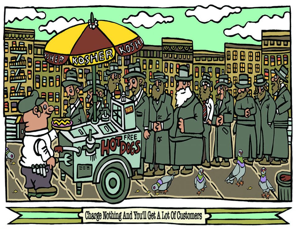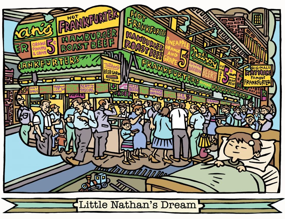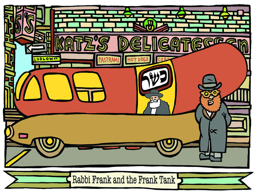 The Museum at Eldridge Street has a new exhibit opening this Thursday, May 12, 2022, that is inspired by “one of the many great Jewish contributions to American culture: the hot dog.” The show takes viewers on a journey into the cartoon world of kosher folk art through a series of new works by local illustrator Steve Marcus.