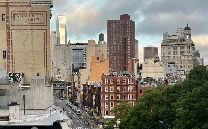 Photo: Looking west with The Forward building in the foreground.