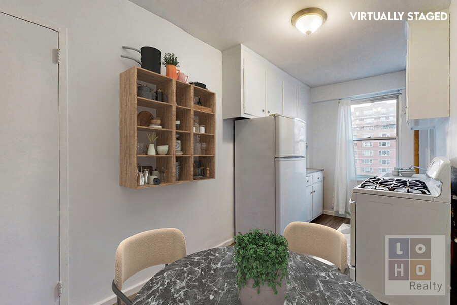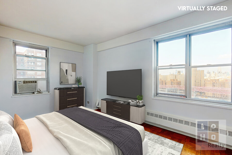 New to Market! This high-floor 1-bedroom apartment is well lit and features views of the Empire State Building as well as the co-op’s private park. As the largest 1-bedroom layout in the co-op, this apartment (approx. 800 sq. ft) features an expansive living room, windowed eat-in kitchen, windowed bath and spacious bedroom large enough to fit a king-sized bed, desk, dresser & more.