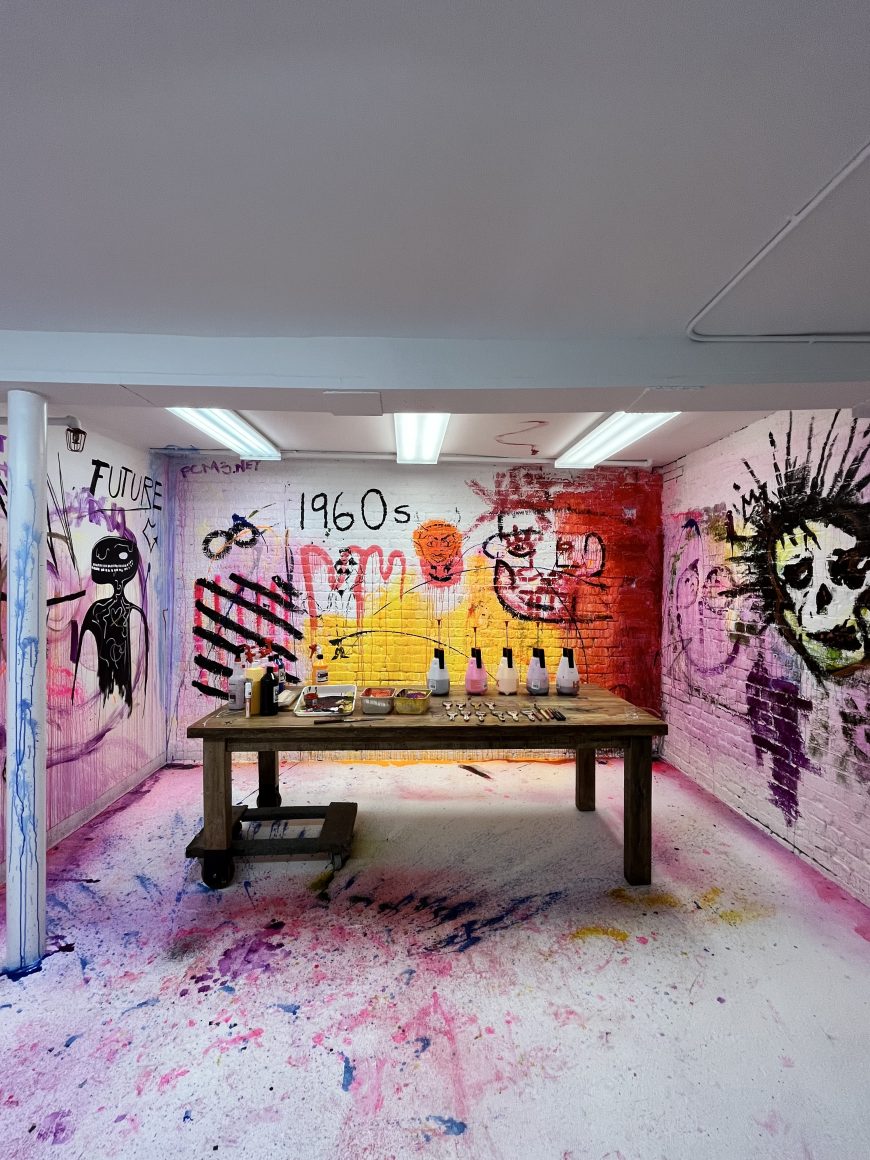 At the same time, though, the SAMO© tag is not a total fraud. It was done by Diaz as part of a show of his latter-day art that took place in the space in 2018. So the tag, like the entire Atelier Jolie project, is real, but at the same time, it’s not completely authentic, sort of a Schrödinger’s cat situation. And that does tend to track with the paradoxical feelings expressed by a lot of people about the emergence of Atelier Jolie at 57 Great Jones Street.