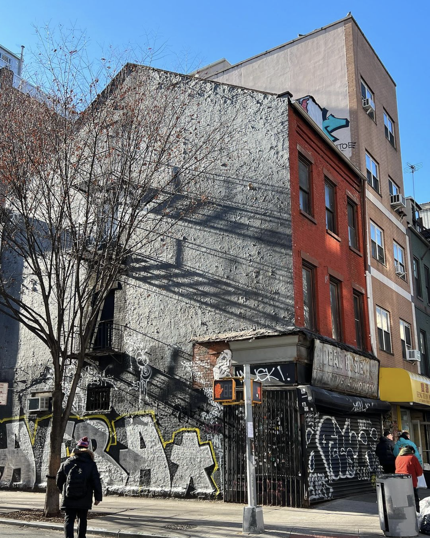 Photo by Pat Arnow @patarnow She writes: “The December light makes spectacular shadows from fire escapes. This is Ideal Hosiery on Grand Street, a crumbling relic of the Lower East Side.”