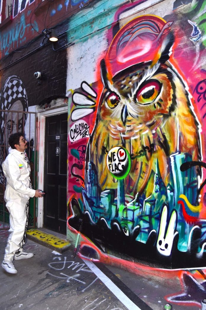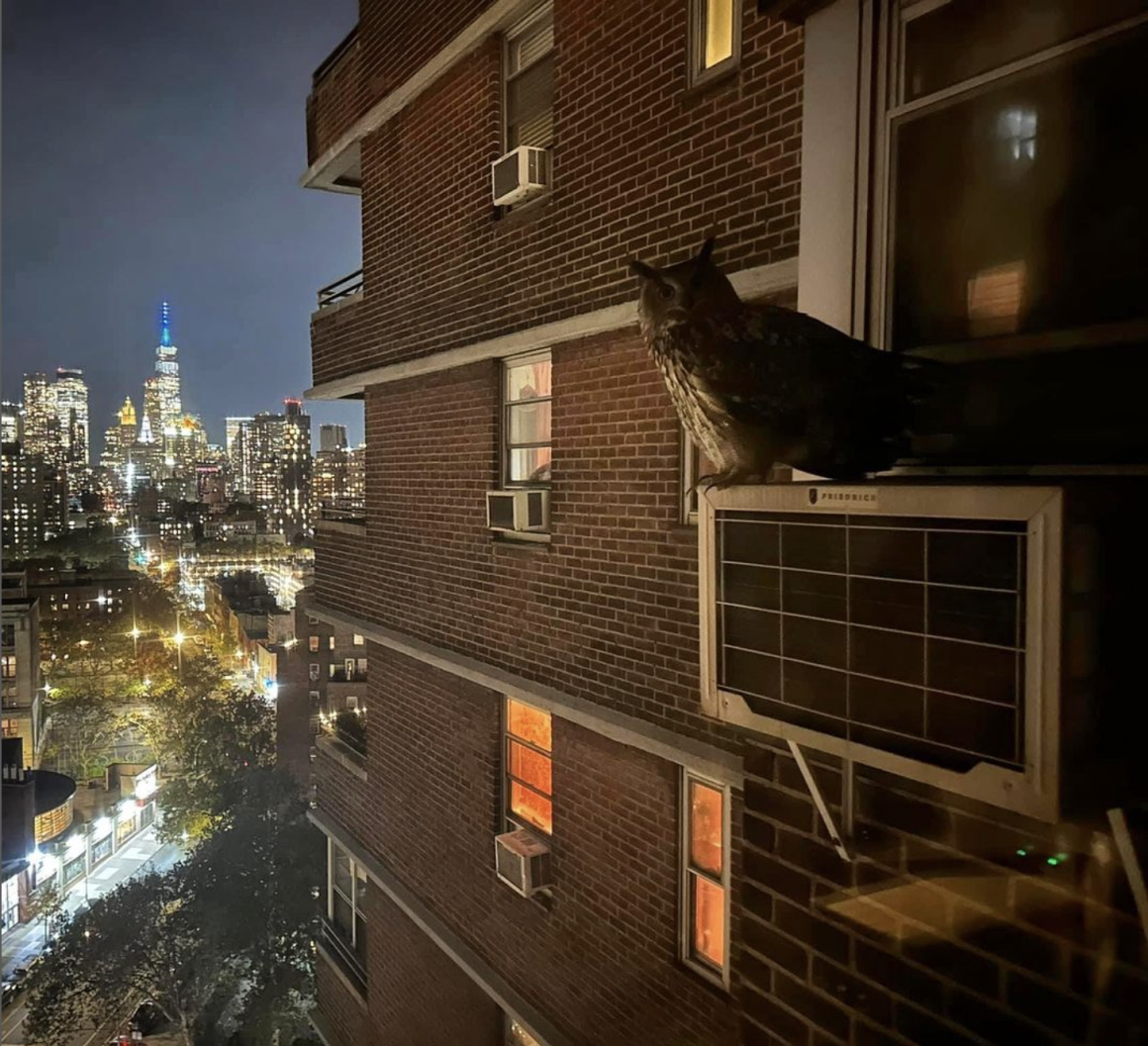 Nina Roberts took this photo of artist Calicho finishing a tribute mural to Flaco the owl in Freeman’s Alley last week. The owl had captured Manhattan’s heart, after someone set him free from the Central Park Zoo, over a year ago, and hanging out in Central Park. He then toured the city, delighting residents while stopping to perch in tall trees, balconies and multiple fire escapes. He even ventured downtown to the Lower East Side to perch on a few air conditioner units.