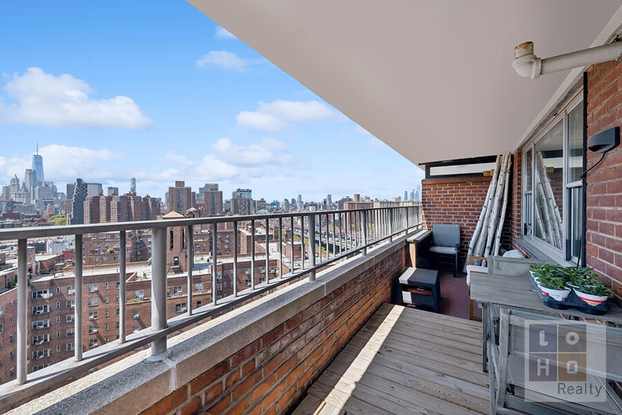 Panoramic views and lots of light await you in this amazing 19th floor penthouse apartment! The apartment opens to an expansive space complete with entry, foyer and very large living. Enjoy fantastic views of the Freedom Tower, East River, Manhattan Bridge & the DUMBO skyline from the comfort of your couch, or from outside on your very own private terrace (approx. 125 sq. ft.). Nestled between the foyer and the dining space is the windowed kitchen, renovated with granite counter tops, tiled backsplash, tiled floors, and stainless-steel appliances (including dishwasher!)