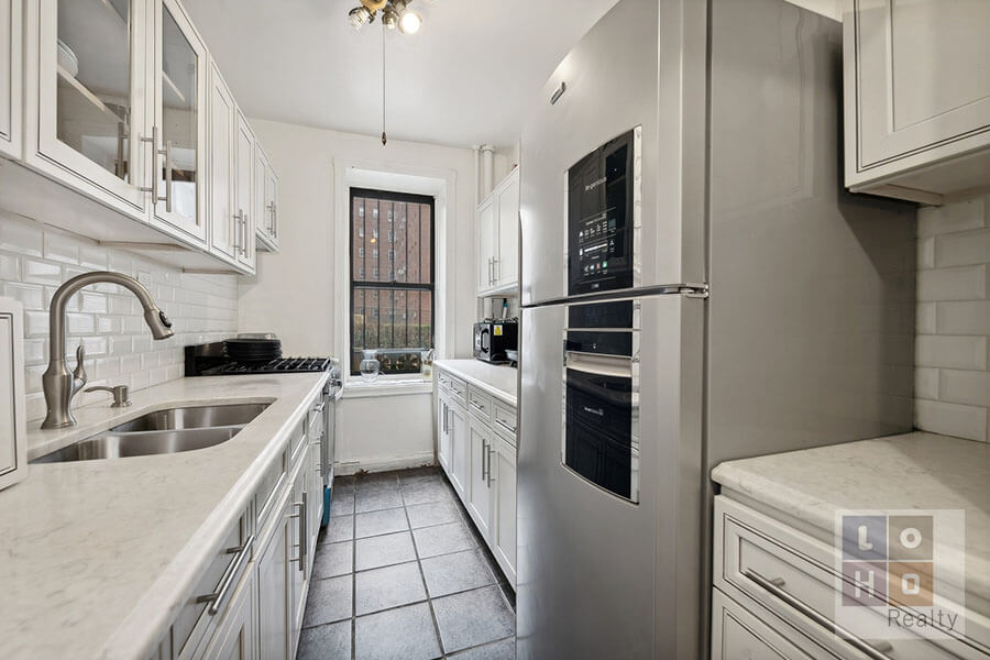 Spacious, ground floor unit in a beautiful pre-war, art deco inspired building. Original in structure, the unit’s pre-war detailing features hardwood floors, styled moldings, 9’ high ceilings with windows in EVERY ROOM. Upon entry into a sizable foyer, you’ll see a renovated kitchen ahead and toward the right, the large living (with western exposures overlooking the co-ops private park).