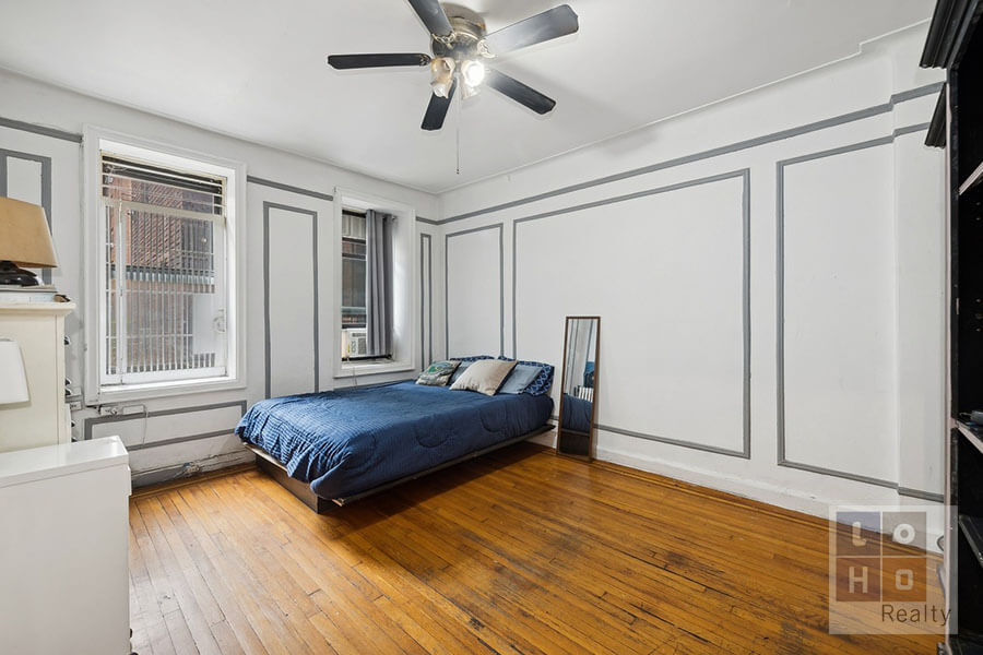 Looking to the other end of the apartment are the king-sized bedroom (with exposures east overlooking the co-ops private courtyard) and the windowed bath with deep soaking tub. For those with renovations in mind, open the kitchen walls toward the living room and foyer to create a truly open and expansive space with optimal light and airflow. The Amalgamated Dwellings features laundry facilities, a gym, a community room, bicycle storage, package room, 24-hour security, and on-site maintenance staff. Gifting, guarantors, pied-a-terre, permitted.