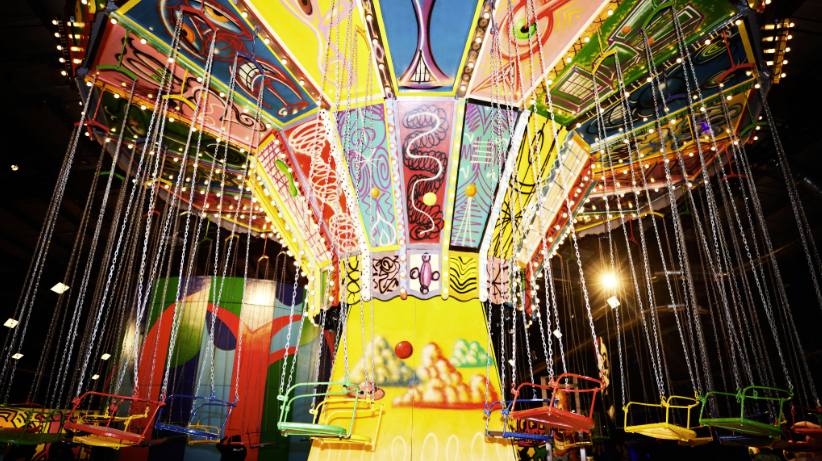 Unearthed, revived and reinvigorated, Luna Luna captivated audiences in Los Angeles beginning last December and now brings its riotous charm to New York City. The reimagined boardwalk attractions include Sharf’s swing ride, Basquiat’s ferris wheel and Haring’s merry-go-round.
