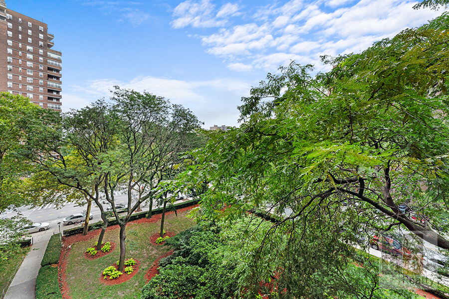 The king-size bedroom enjoys gentle east- and south-facing light and shares the same leafy outlook as the balcony, giving the space a quiet, restorative feel. A windowed, eat-in kitchen invites everything from quick weekday breakfasts to lingering weekend brunches, and the windowed bath keeps morning routines bright and breezy. Storage will never be an issue thanks to four large closets, including two true walk-ins, and classic hardwood parquet floors lend warmth throughout the apartment—ready to complement any design style you bring.