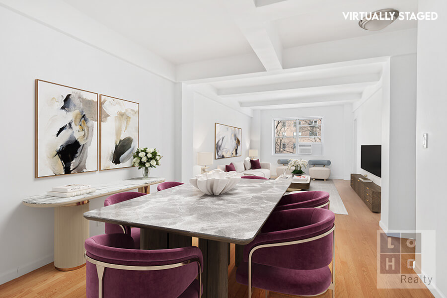 Welcome to this thoughtfully updated home in one of Manhattan’s most vibrant neighborhoods, featuring peaceful park views and an abundance of natural light streaming through windows in every room. A spacious foyer leads into a generously proportioned living room, a dedicated dining area, and a true cook’s kitchen—ideal for both everyday living and entertaining. The windowed kitchen features abundant solid wood cabinetry, granite countertops, wine rack, a dedicated pantry, and a full suite of stainless-steel appliances, including a dishwasher.